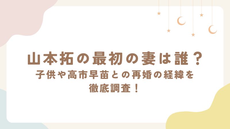 山本拓の最初の妻は誰?子供や高市早苗との再婚の経緯を徹底調査!